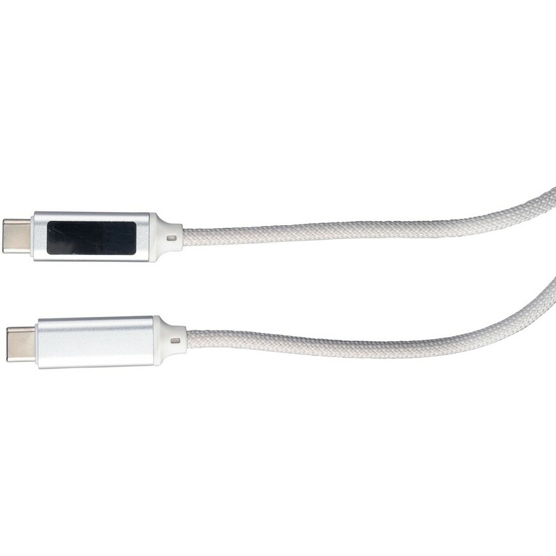 Kabel do ładowania i przesyłania danych 100W, o długości 1 metra, USB-C na USB-C, niebieska kontrolka prędkości ładowania na gnieździe, zmieści się w kieszeni, produkt wykonany z tkaniny nylonowej i aluminium