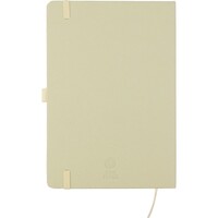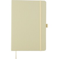 Notatnik w formacie ok. A5, posiada 80 stron w linie drukowanych tuszem sojowym, tasiemka zakładkowa umożliwia wygodne zaznaczanie ostatniej strony lub ważniejszych notatek, dodatkowe zamknięcie w postaci dopasowanej kolorystycznie elastycznej opaski, zmieści się do szkolnego plecaka, notatnik posiada papierową okładkę Favini pochodzącą z Włoch, ikona surowca na produkcie, produkt wykonany z kartonu i resztek produkcyjnych (04 - lawenda, 05 - wiśnia, 06 - cytrusy, 18 - migdały, 25- winogrona) oraz papieru 70 g/m²