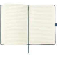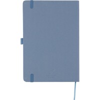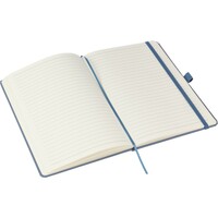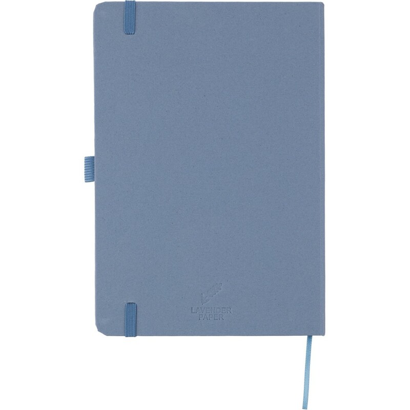 Notatnik w formacie ok. A5, posiada 80 stron w linie drukowanych tuszem sojowym, tasiemka zakładkowa umożliwia wygodne zaznaczanie ostatniej strony lub ważniejszych notatek, dodatkowe zamknięcie w postaci dopasowanej kolorystycznie elastycznej opaski, zmieści się do szkolnego plecaka, notatnik posiada papierową okładkę Favini pochodzącą z Włoch, ikona surowca na produkcie, produkt wykonany z kartonu i resztek produkcyjnych (04 - lawenda, 05 - wiśnia, 06 - cytrusy, 18 - migdały, 25- winogrona) oraz papieru 70 g/m²