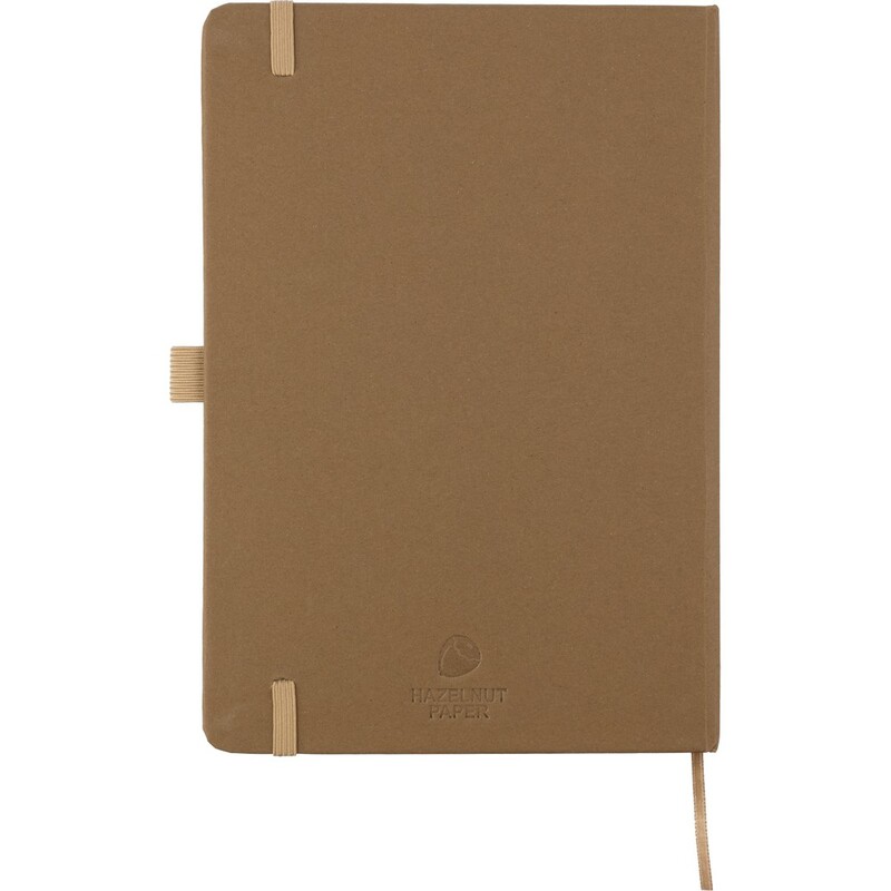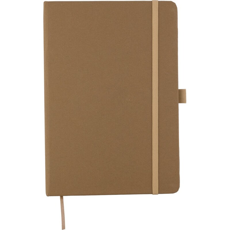 Notatnik w formacie ok. A5, posiada 80 stron w linie drukowanych tuszem sojowym, tasiemka zakładkowa umożliwia wygodne zaznaczanie ostatniej strony lub ważniejszych notatek, dodatkowe zamknięcie w postaci dopasowanej kolorystycznie elastycznej opaski, zmieści się do szkolnego plecaka, notatnik posiada papierową okładkę Favini pochodzącą z Włoch, ikona surowca na produkcie, produkt wykonany z kartonu i resztek produkcyjnych (04 - lawenda, 05 - wiśnia, 06 - cytrusy, 18 - migdały, 25- winogrona) oraz papieru 70 g/m²