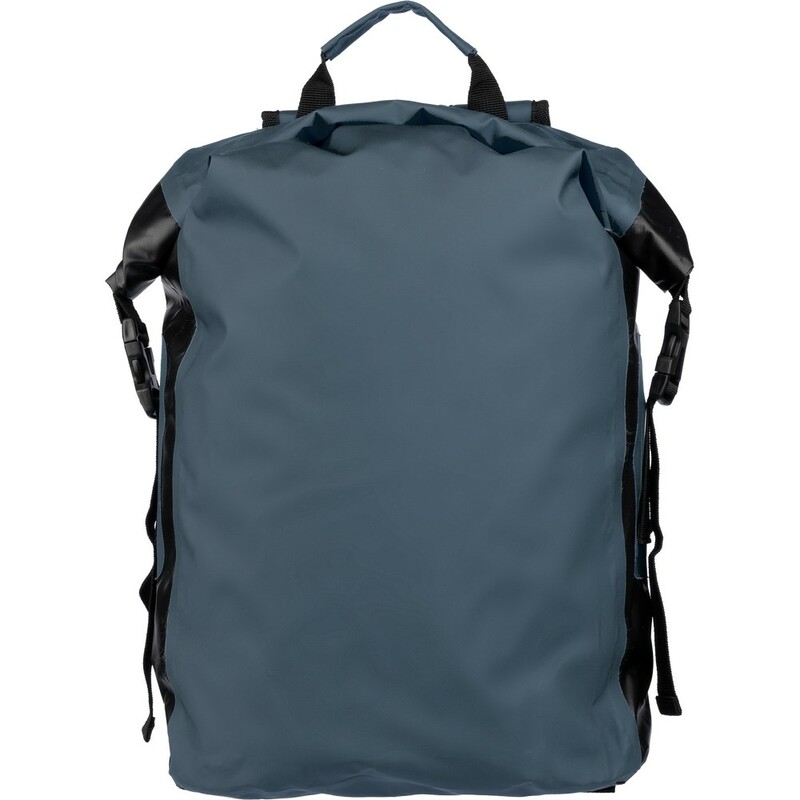 Plecak zwijany, wodoodporny, rozwijalna główna kieszeń zamykana na klamrę, która umożliwia zwiększanie pojemności plecaka oraz lepiej chroni przed czynnikami atmosferycznymi po zwinięciu, posiada regulowane, wzmocnione paski i wzmocniony spód, uchwyt ułatwiający noszenie, produkt wykonany między innymi z poliestru