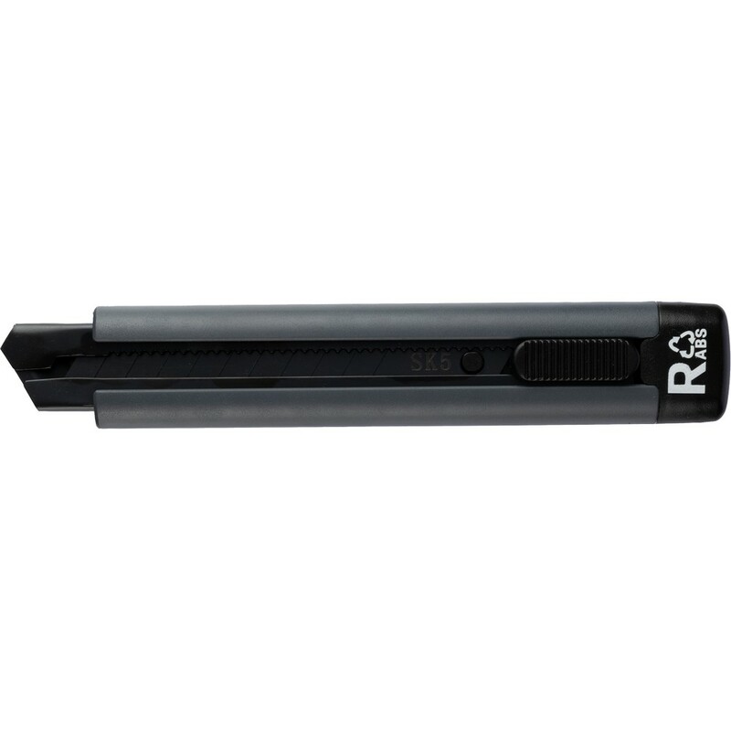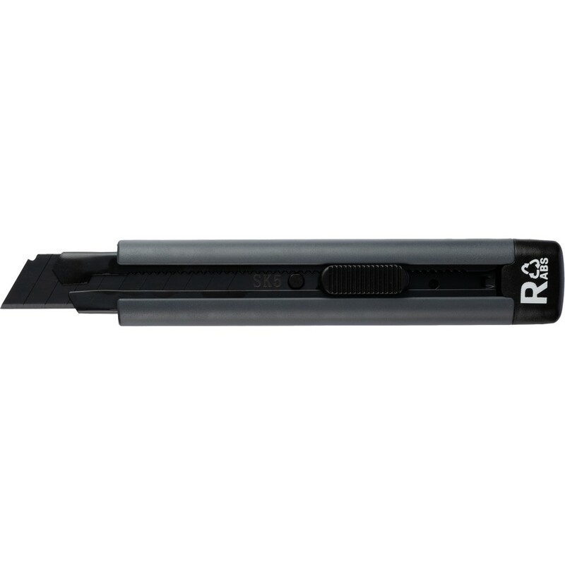Nóż do tapet z mechanizmem zabezpieczającym, łamane ostrza, ikona ABS z recyklingu na produkcie, przyda się podczas drobnych prac naprawczych lub montażowych a także jako narzędzie codziennego użytku w magazynach, produkt wykonany z ABS z recyklingu