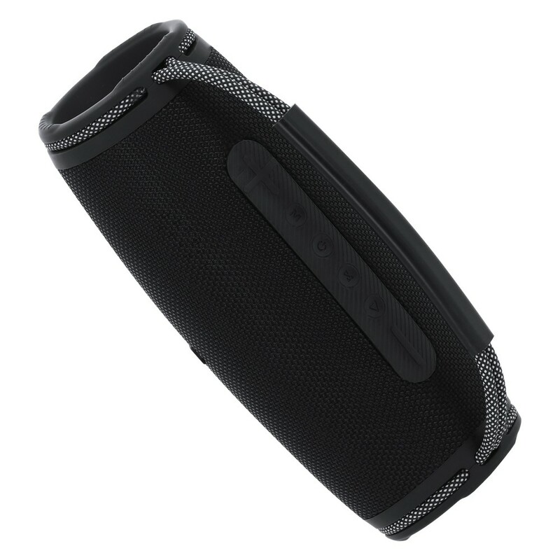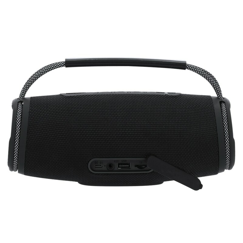 Głośnik bezprzewodowy BT 5.3, moc 2x5W, posiada silikonowy uchwyt ułatwiający noszenie, wielokolorowe światła LED oferujące 7 trybów świecenia, zintegrowany panel sterowania, bateria 1200 mAh, czytnik kart micro SD (nie dołączona), zasięg do 10 m, wejście USB, ładowany przez USB, kabel micro USB w komplecie, produkt wykonany między innymi z poliestru