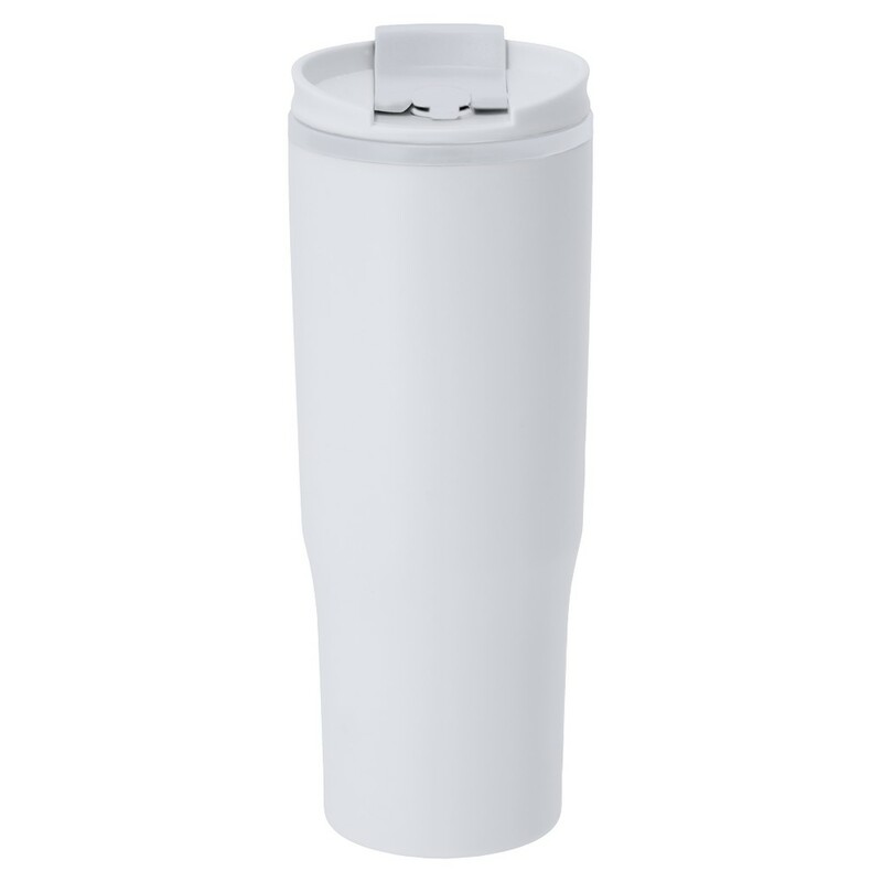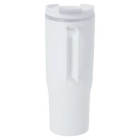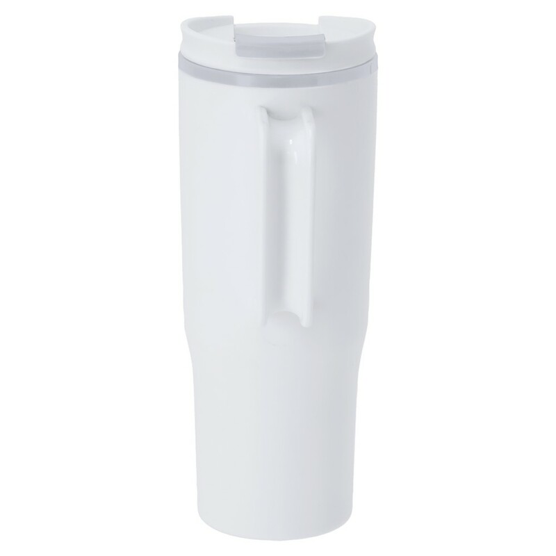 Kubek termiczny 800 ml, posiada pokrywkę, rączkę i otwór na słomkę, posiada podwójne ścianki ze stali nierdzewnej z próżnią między ściankami, co spowalnia oddawanie temperatury na zewnątrz, zachowując funkcje termosu, produkt wykonany z PP z recyklingu