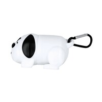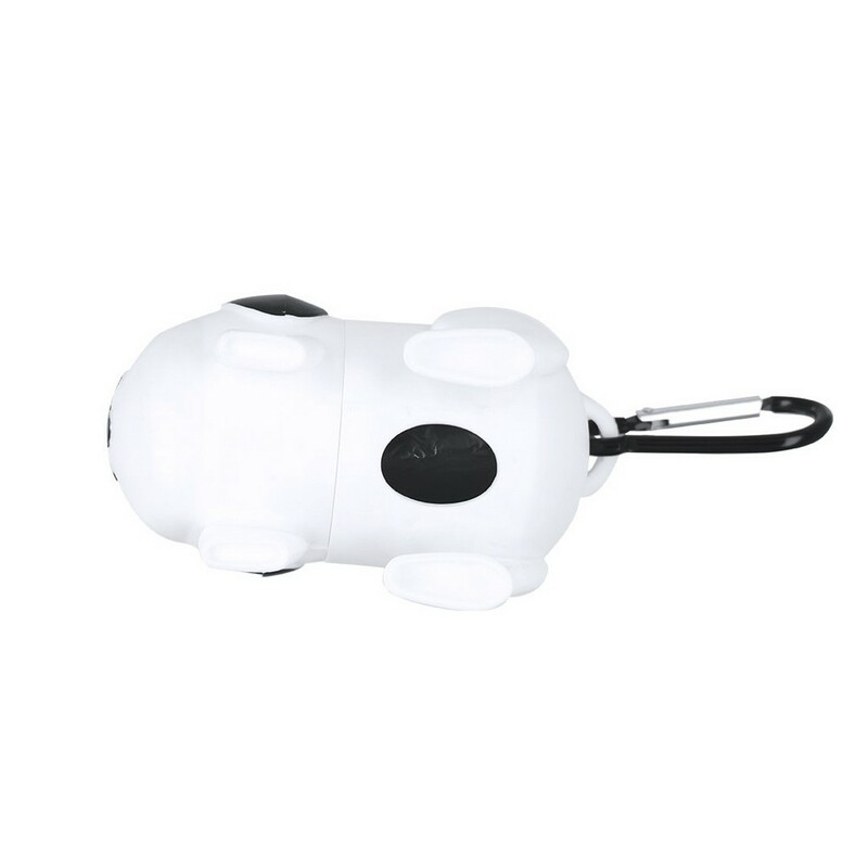 Zasobnik z 15 woreczkami na psie odchody, zasobnik w kształcie psa, posiada karabińczyk umożliwiający przypinanie, produkt wykonany z PP