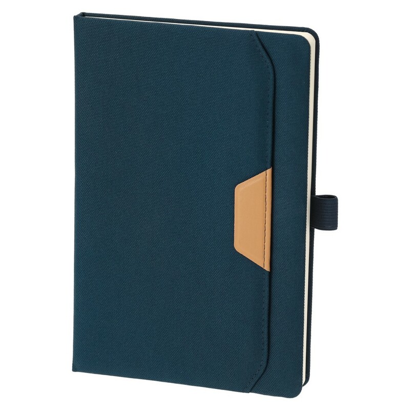 Notatnik w formacie ok. A5 z twardą okładką, posiada 80 kartek w linie oraz kieszonkę na okładce, produkt wykonany z RPET