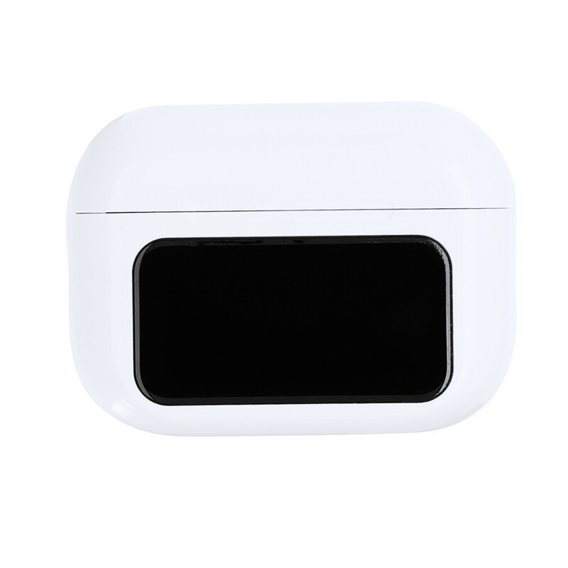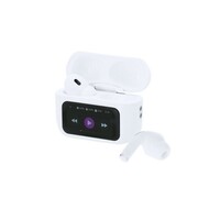 Bezprzewodowe słuchawki douszne BT 5.3 z systemem aktywnej redukcji szumów (ANC) oraz funkcją redukcji szumów otoczenia podczas rozmów (ENC), bateria słuchawek 30 mAh, posiadają etui z ekranem dotykowym i stacją ładującą słuchawki 300 mAh, czas pracy: ok. 3-4h, kabel USB-C w komplecie, produkt wykonany z ABS