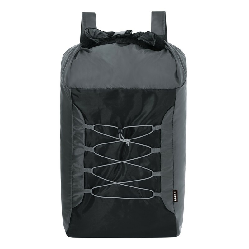Plecak, posiada regulowane paski na ramię umożliwiające dopasowanie ich długości do własnych preferencji, elastyczny ściągacz z przodu, produkt wykonany z poliestru 210D RPET i ripstop