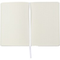 Notatnik A5 w twardej okładce posiada 80 kartek w kratkę, tasiemka zakładkowa umożliwia wygodne zaznaczanie ostatniej strony lub ważniejszych notatek, dodatkowe zamknięcie w postaci dopasowanej kolorystycznie elastycznej opaski, produkt wykonany z papieru, kartonu, gumy, poliestru