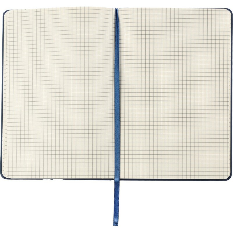 Notatnik A5 w twardej okładce posiada 80 kartek w kratkę, tasiemka zakładkowa umożliwia wygodne zaznaczanie ostatniej strony lub ważniejszych notatek, dodatkowe zamknięcie w postaci dopasowanej kolorystycznie elastycznej opaski, produkt wykonany z papieru, kartonu, gumy, poliestru