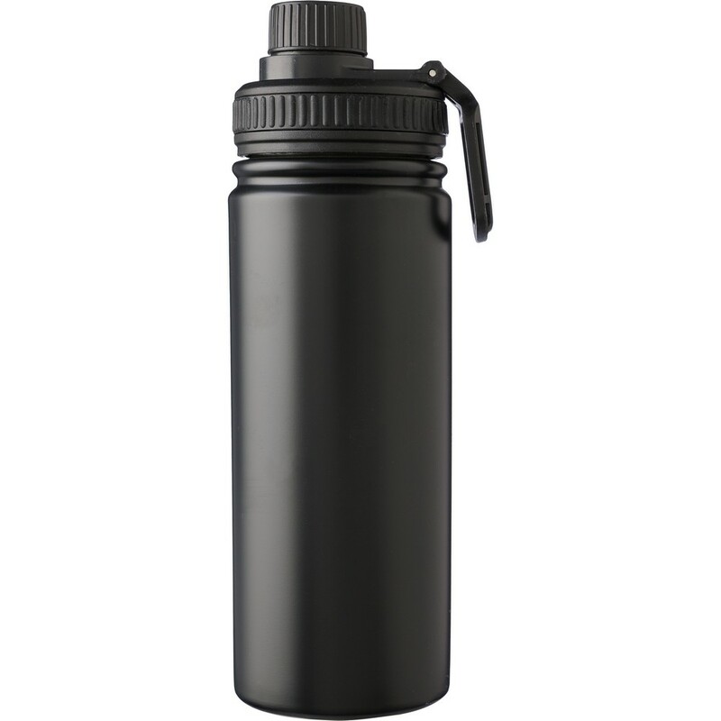 Butelka termiczna 500 ml, posiada podwójne ścianki ze stali nierdzewnej z próżnią między ściankami dzięki czemu zachowuje funkcje termosu i długo utrzymuje temperaturę nie oddając jej na zewnątrz, zakręcana wylewka we wieczku, uchwyt ułatwiający przenoszenie lub przypięcie do innego przedmiotu, zapakowana w brązowy kartonik, produkt wykonany ze stali nierdzewnej i PU