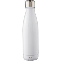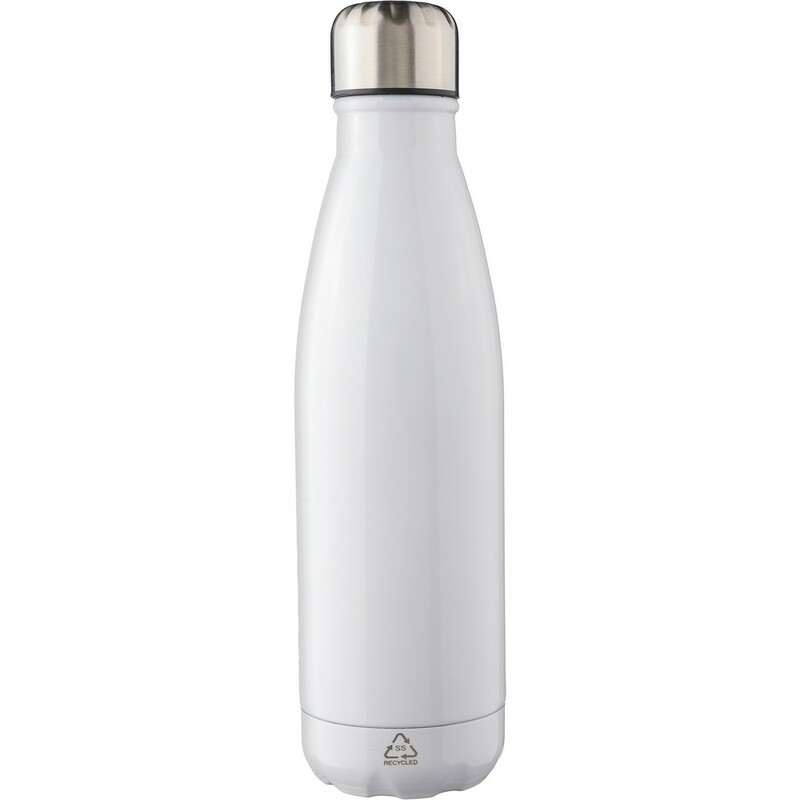 Butelka sportowa 650 ml, ikona stali nierdzewnej z recyklingu na produkcie, zapakowana w brązowy kartonik, produkt wykonany ze stali nierdzewnej z recyklingu