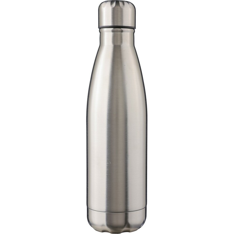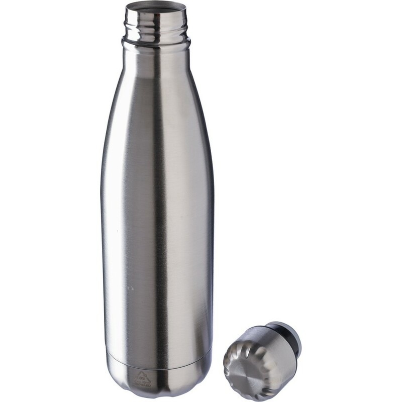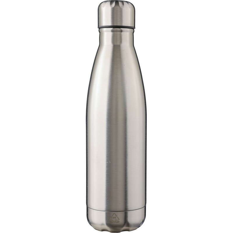 Butelka sportowa 650 ml, ikona stali nierdzewnej z recyklingu na produkcie, zapakowana w brązowy kartonik, produkt wykonany ze stali nierdzewnej z recyklingu