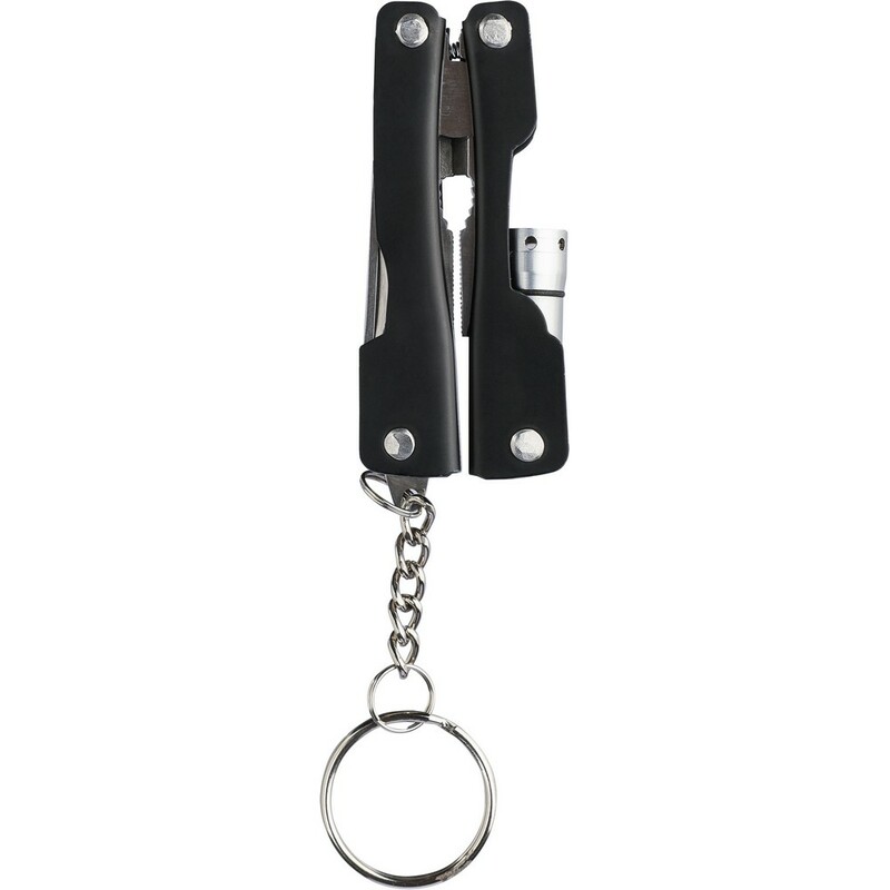 Narzędzie wielofunkcyjne, 10 funkcji: latarka, etui zapinane na rzep w zestawie (możliwe przymocowanie do paska), narzędzie zapakowane w brązowy kartonik, produkt wykonany ze stali nierdzewnej