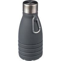 Składana butelka sportowa 550 ml z karabińczykiem umożliwiającym przypinanie, produkt wykonany z silikonu, stali nierdzewnej, PP i aluminium