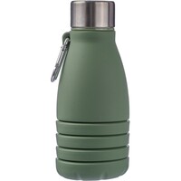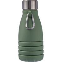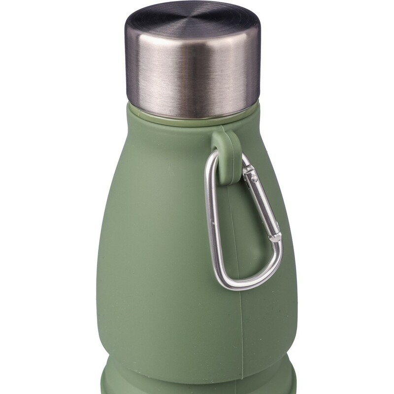 Składana butelka sportowa 550 ml z karabińczykiem umożliwiającym przypinanie, produkt wykonany z silikonu, stali nierdzewnej, PP i aluminium