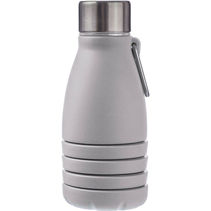 Składana butelka sportowa 550 ml z karabińczykiem umożliwiającym przypinanie, produkt wykonany z silikonu, stali nierdzewnej, PP i aluminium