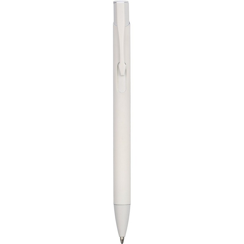 Długopis aluminiowy z recyklingu z gumowaną powłoką na korpusie, ikona aluminium z recyklingu wygrawerowana na produkcie, wkład w niebieskim kolorze, produkt wykonany z aluminium i ABS