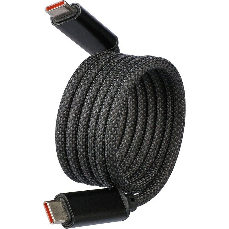 Kabel do przesyłania danych i ładowania z końcówkami 2 x USB-C, szybkość transmisji danych 240 Mb/s, dzięki magnesowi wewnątrz kabel jest automatycznie zwijany, moc wyjściowa ładowania 60W, zapakowany w brązowy kartonik, produkt wykonany z nylonu i aluminium