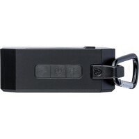 Głośnik bezprzewodowy z karabińczykiem umożliwiającym przypinanie, IPX4 co oznacza ochronę przed delikatnym zachlapaniem wodą przez minutę, moc wyjściowa 3 W, wejście DC 5 V, wbudowany akumulator 300 mAh, działa w odległości 15-20 metrów od źródła sygnału, stosunek sygnału do szumu 87 dB, częstotliwość 100 Hz-20 K Hz, kabel ładujący o długości 50 cm typu C w zestawie, 2 godziny czasu gry, BT 5.2, zapakowany w brązowy kartonik, produkt wykonany z ABS