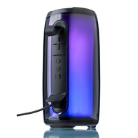 Głośnik bezprzewodowy, IPX6 co oznacza ochronę przed strumieniem wody przez 3 minuty, moc wyjściowa 5W, wejście DC 5 V, wbudowany akumulator 1200 mAh, działa w odległości 15-20 metrów od źródła sygnału, stosunek sygnału do szumu 87 dB, częstotliwość 100 Hz-20 K Hz, kabel ładujący o długości 30 cm typu C w zestawie, czas gry 3,5 godziny, BT 4.2, zapakowany w brązowy kartonik, produkt wykonany z ABS i PS
