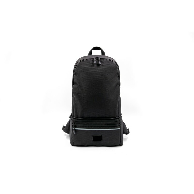 Plecak składany BrandCharger Combo, wykonany z powtórnie przetworzonych butelek PET, można go łatwo przekształcić z plecaka w torby na ramię lub do noszenia na talii, tryb plecaka zapewnia dodatkowych 6 litrów miejsca do przechowywania, sprawdzi się w podróży, szkole, siłowni, pracy, wodoodporny i odporny na plamy materiał, wyposażony w odblaskowe elementy zapewniające bezpieczeństwo, produkt wykonany z RPET i poliestru
