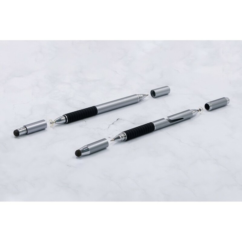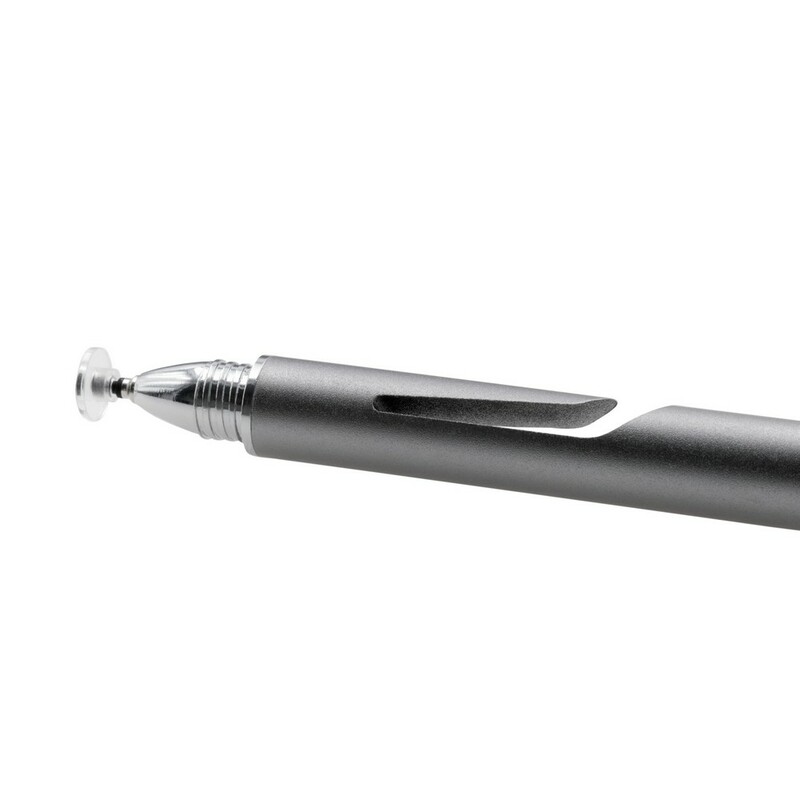 Pióro kulkowe BrandCharger Styllo 2, po przekręceniu trzonu zmienia się z gładkiego pióra kulkowego do papieru w rysik dyskowy do obsługi ekranów dotykowych, sprawdzi się jako upominek w branży kreatywnej, aluminiowa obudowa zapewnia elegancki, profesjonalny wygląd, kompatybilne ze wszystkimi urządzeniami z ekranem dotykowym, nie wymaga baterii, zapakowany w czarne papierowe pudełko, produkt wykonany z aluminium, włókna węglowego i silikonu
