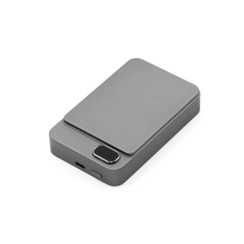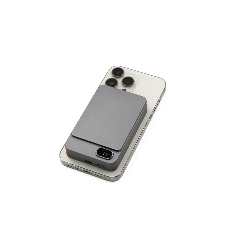 Power Bank BrandCharger Powerwave 10000, elegancka aluminiowa obudowa, pojemność 10 000 mAh, obsługuje szybkie bezprzewodowe ładowanie o mocy 15 W (kompatybilne z MagSafe, Qi1 i Qi2), port USB-C o mocy 20 W z PD 3.0 umożliwia zasilanie laptopów i innych urządzeń, wyświetlacz LCD pokazuje stan baterii, wyposażony w inteligentny chip, chroni urządzenia przed przetężeniem, przeładowaniem, przegrzaniem i zwarciem, zapewniając niezawodne i bezpieczne ładowanie, produkt wykonany z ABS i aluminium z recyklingu
