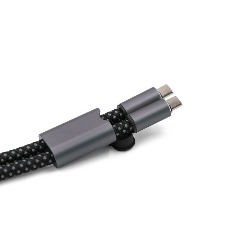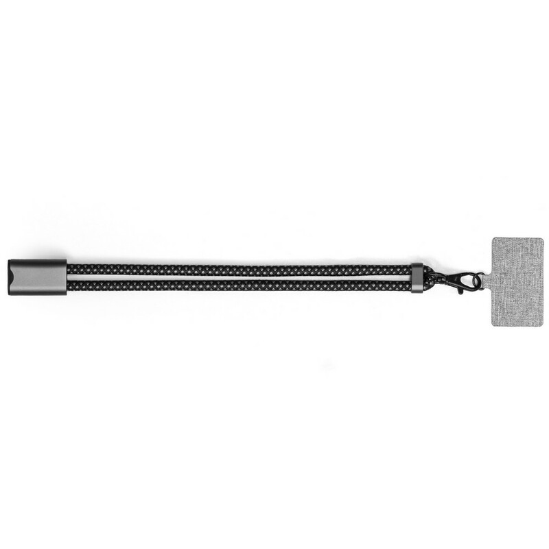 Kabel do ładowania i synchronizacji BrandCharger Lany Wristband Charge, wykonany z przetworzonych powtórnie butelek PET, lekki, regulowany i przetestowany pod kątem wytrzymałości do 8 kg, pasuje do większości etui na telefony, wyposażony w kabel w oplocie RPET-Nylon z wejściem typu C i wyjściem USB typu C, obsługuje moc do 60 W, kabel o długości 22 cm, produkt wykonany z nylonu, aluminium i RPET