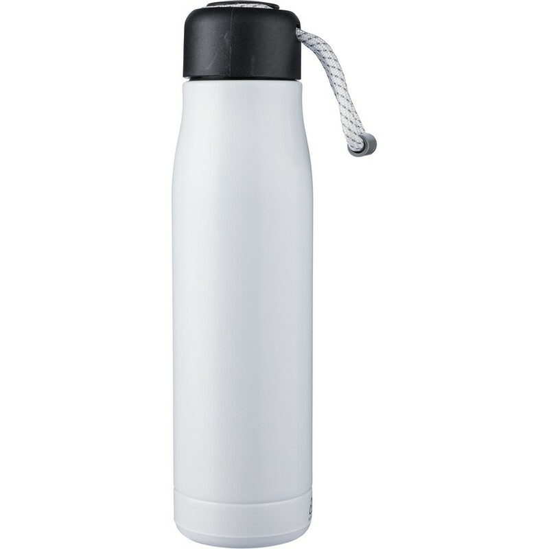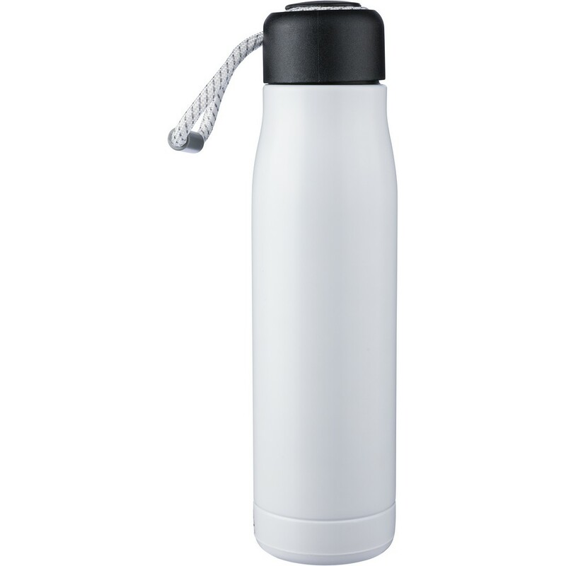 Butelka termiczna 500 ml ze stali nierdzewnej, podwójne ścianki ze stali nierdzewnej z próżnią między ściankami dzięki czemu zachowuje funkcje termosu i długo utrzymuje temperaturę nie oddając jej na zewnątrz, zewnętrzna część wykonana jest ze stali nierdzewnej 201, a wewnętrzna ścianka ze stali nierdzewnej 304, wieczko z PP, sznurek ułatwiający noszenie, ikona recyklingu na produkcie, zapakowana w brązowe kartonowe pudełko