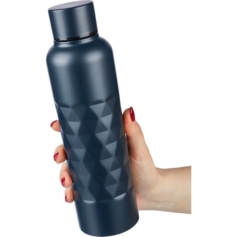 Butelka sportowa 800 ml ze stali nierdzewnej, pojedyncza warstwa ze stali 304, zakręcane wieczko, tekstura w kształcie diamentu, ikona recyklingu na produkcie, zapakowana w brązowe kartonowe pudełko