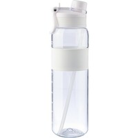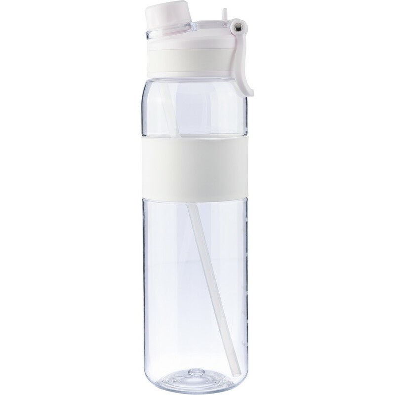 Butelka sportowa 900 ml z tritanu, ustnik i odkręcane wieczko, silikonowy pierścień, uchwyt ułatwiający noszenie, miarka z boku, zapakowana w kartonową wytłoczkę