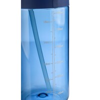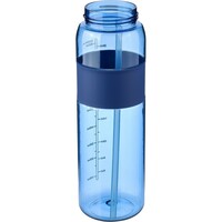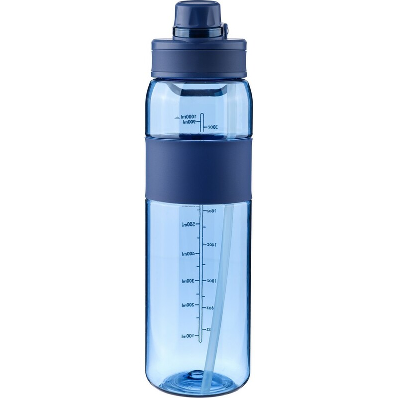 Butelka sportowa 900 ml z tritanu, ustnik i odkręcane wieczko, silikonowy pierścień, uchwyt ułatwiający noszenie, miarka z boku, zapakowana w kartonową wytłoczkę