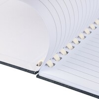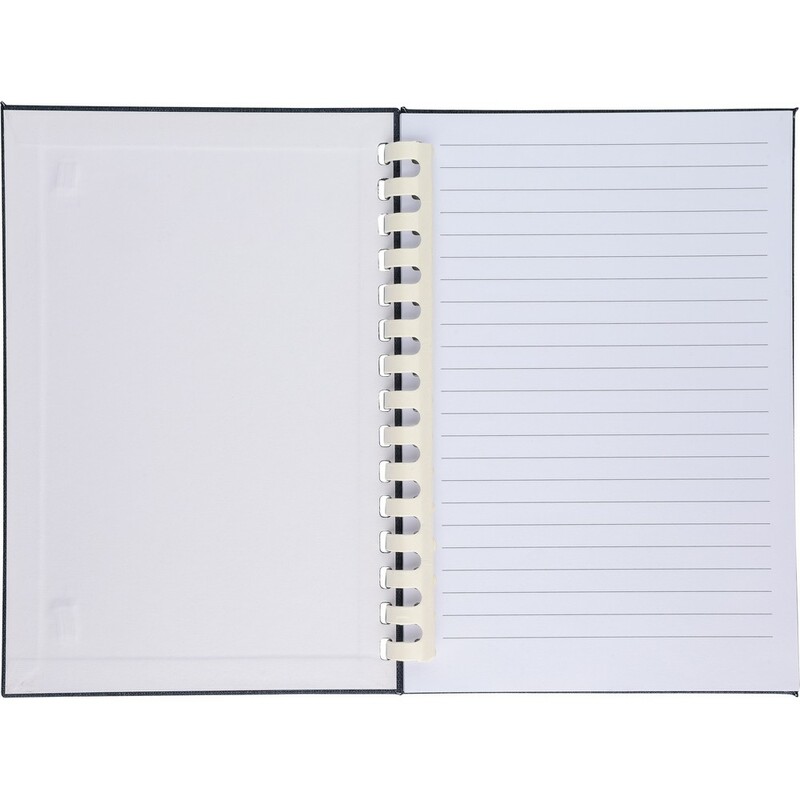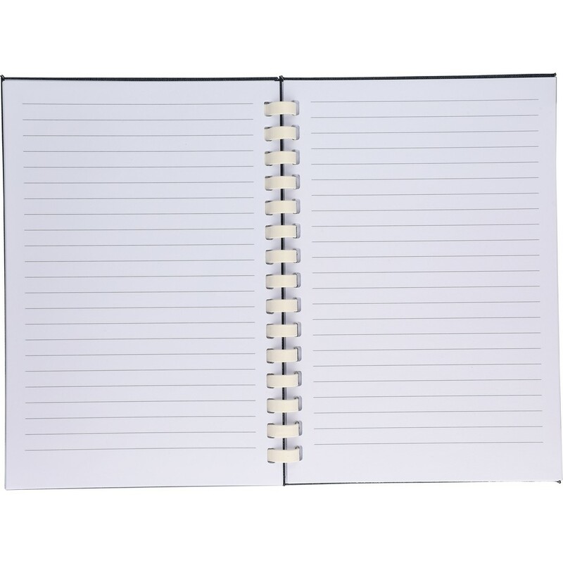 Notatnik ok. A5, 80 kartek w linie, (70 g/m²) z twardą okładką, zewnętrznym paskiem zamykającym, tasiemka zakładkowa umożliwia wygodne zaznaczanie ostatniej strony lub ważniejszych notatek, ikona RPET na produkcie