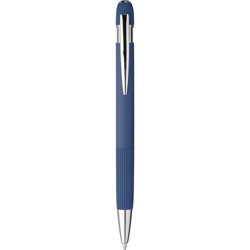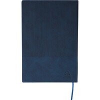 Notatnik ok A5, 100 stron w linie (70 g/m²) z twardą okładką przypominającą sztruks, tasiemka zakładkowa umożliwia wygodne zaznaczanie ostatniej strony lub ważniejszych notatek, długopis w komplecie, gumowe wykończenie, paskowane detale na trzonie i w górnej części, chromowana plastikowa końcówka, ikona recyklingu na obu produktach, zapakowane w brązowe kartonowe pudełko, produkt wykonany z PU i metalu