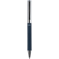 Długopis przekręcany, wykonany z metalu i RPET, wkład w niebieskim kolorze, ikona RPET na produkcie, zapakowany w brązowe kartonowe pudełko