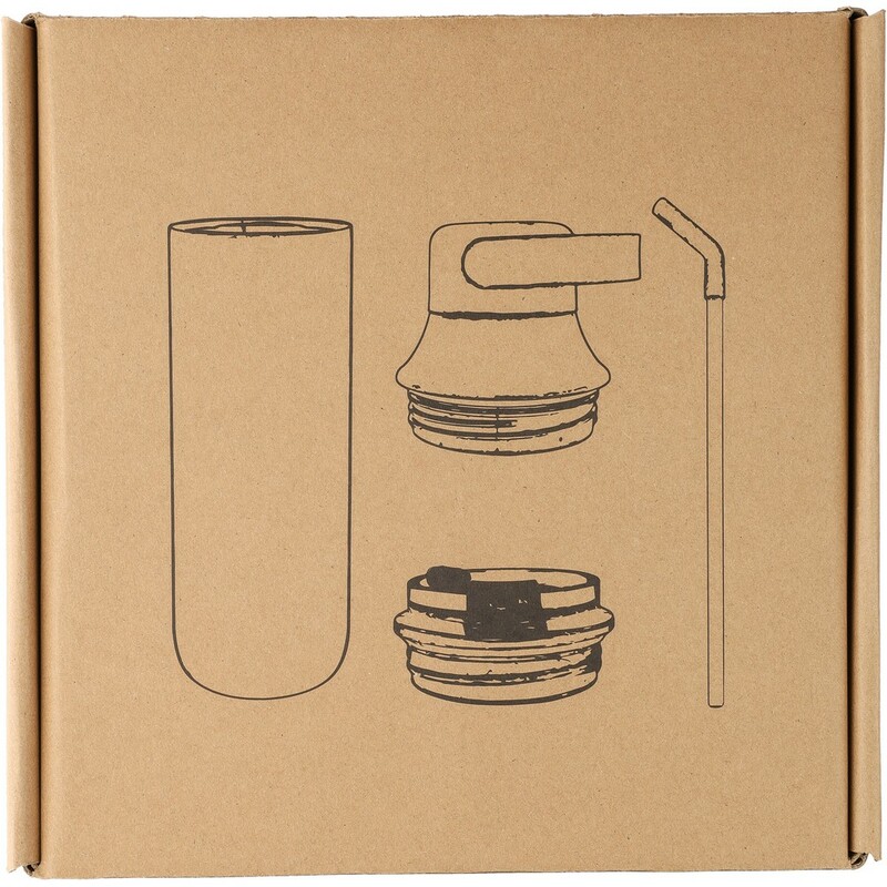 Butelka 500 ml ze stali nierdzewnej, uchwyt ułatwiający noszenie, podwójne ścianki ze stali nierdzewnej z próżnią między ściankami dzięki czemu zachowuje funkcje termosu i długo utrzymuje temperaturę nie oddając jej na zewnątrz, zewnętrzna część wykonana jest ze stali nierdzewnej 201, a wewnętrzna ścianka ze stali nierdzewnej 304, dwa wieczka, zapakowana w brązowe kartonowe pudełko