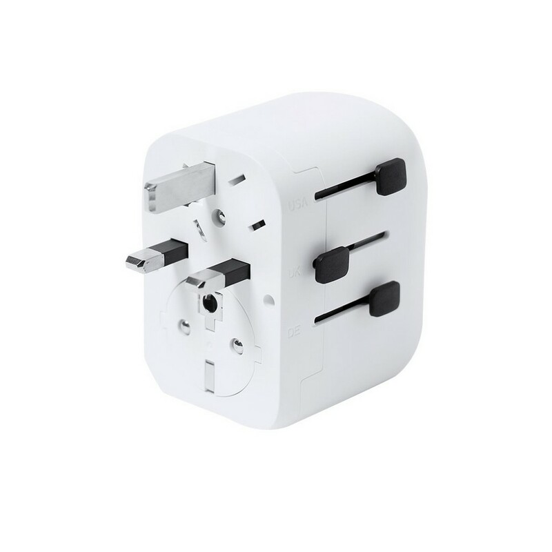 Adapter podróżny z wyjściem USB i USB-C,wtyczki z: USA, Europy, Azji, UK i Australii, produkt wykonany z ABS