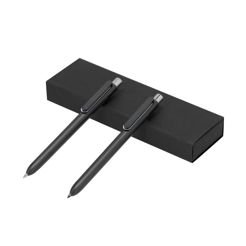 Zestaw piśmienniczy w etui, długopis i "wieczny" ołówek ze specjalną wolnościerającą się końcówką, wkład długopisu w niebieskim kolorze, produkt wykonany z RABS