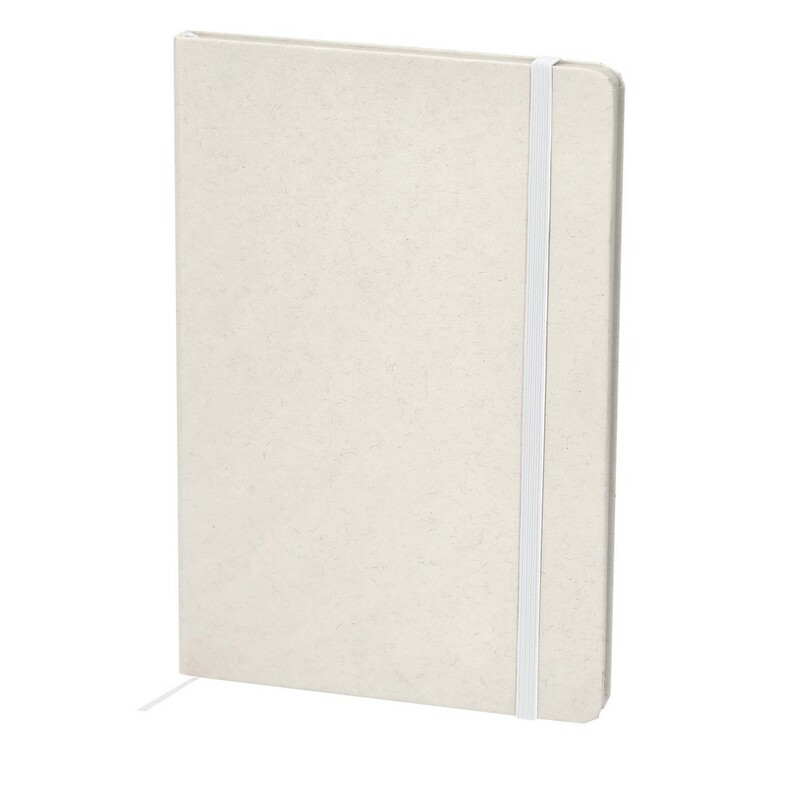 Notatnik ok. A5, posiada 80 kartek w linie, tasiemka zakładkowa umożliwia wygodne zaznaczanie ostatniej strony lub ważniejszych notatek, dodatkowe zamknięcie w postaci kolorowej elastycznej opaski, twarda okładka, produkt wykonany ze zrecyklingowanych kartoników po mleku