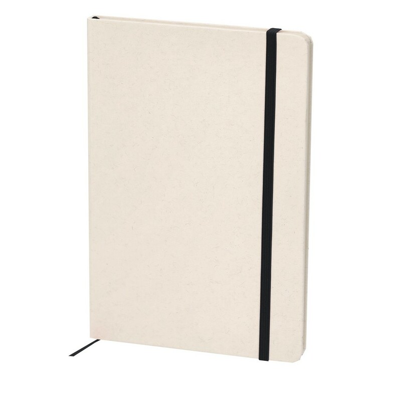 Notatnik ok. A5, posiada 80 kartek w linie, tasiemka zakładkowa umożliwia wygodne zaznaczanie ostatniej strony lub ważniejszych notatek, dodatkowe zamknięcie w postaci kolorowej elastycznej opaski, twarda okładka, produkt wykonany ze zrecyklingowanych kartoników po mleku
