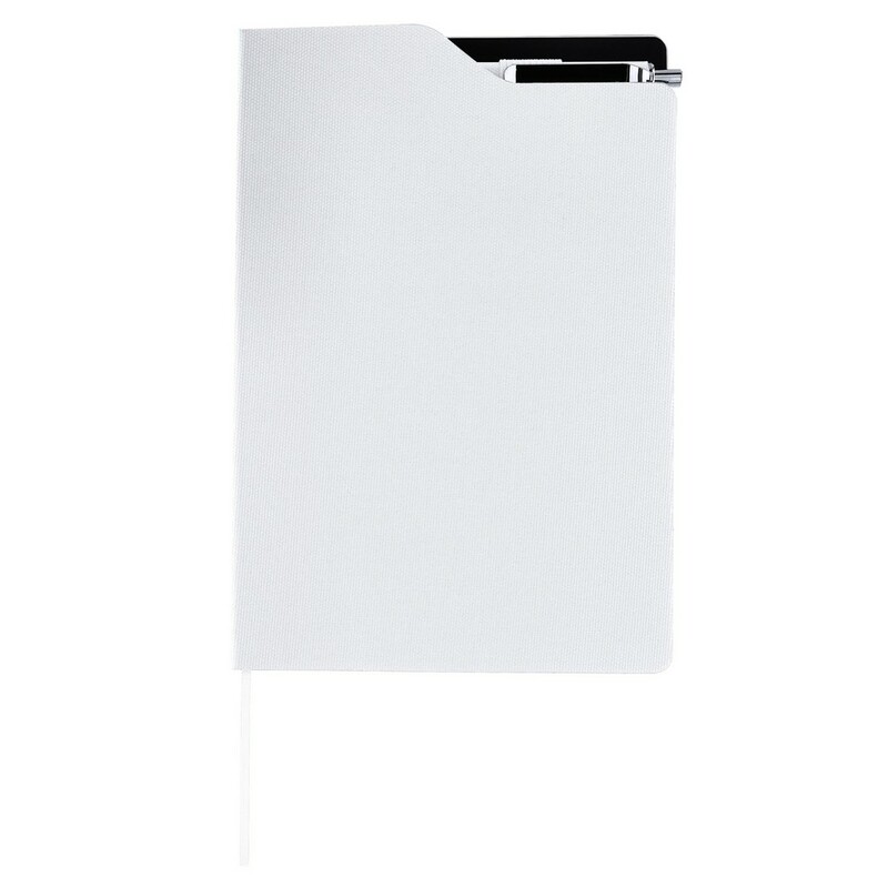 Notatnik ok. A5, posiada 80 kartek w linie, tasiemka zakładkowa umożliwia wygodne zaznaczanie ostatniej strony lub ważniejszych notatek, twarda okładka, długopis z wkładem w niebieskim kolorze, produkt wykonany z poliestru 300D