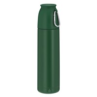 Termos 500 ml z karabińczykiem umożliwiającym przypinanie, posiada podwójne ścianki, które spowalniają oddawanie temperatury na zewnątrz, produkt wykonany ze stali nierdzewnej