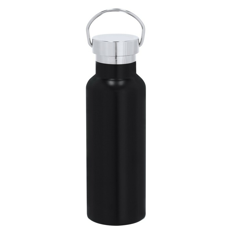 Butelka termiczna 500 ml z uchwytem ułatwiającym noszenie, podwójne ścianki ze stali nierdzewnej z próżnią między ściankami dzięki czemu długo utrzymuje temperaturę nie oddając jej na zewnątrz, produkt wykonany ze stali nierdzewnej z recyklingu z ceramiczną wewnętrzną powłoką