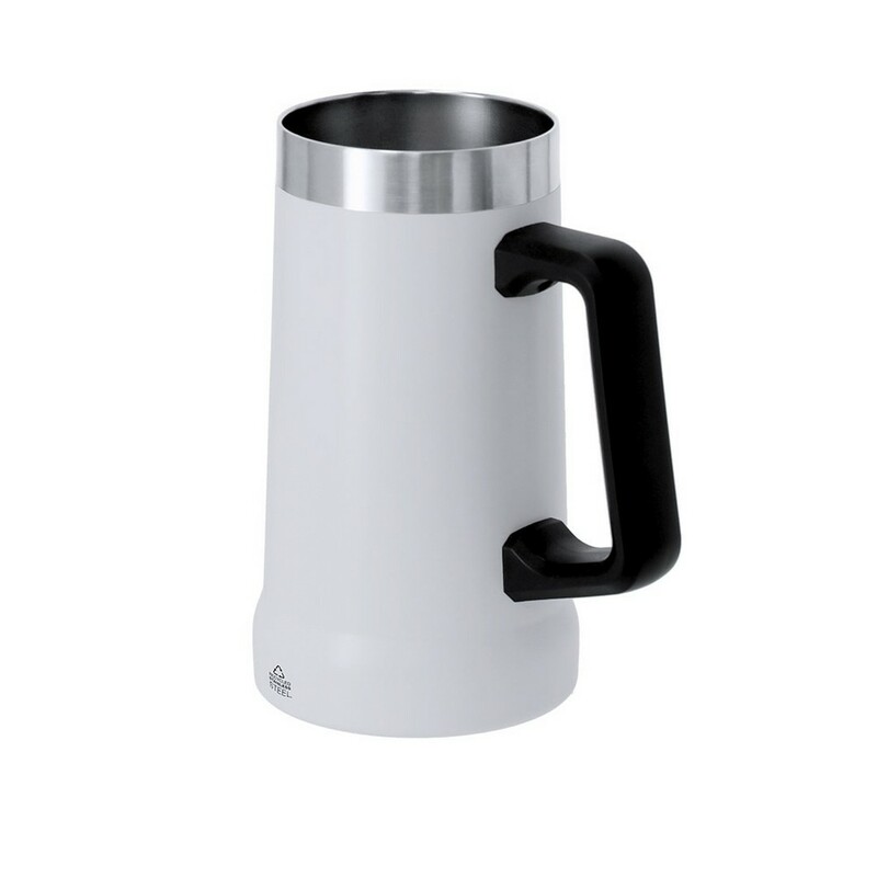 Kubek 700 ml, podwójne ścianki ze stali nierdzewnej z próżnią między ściankami dzięki czemu długo utrzymuje temperaturę nie oddając jej na zewnątrz, produkt wykonany ze stali nierdzewnej z recyklingu