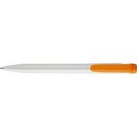 Długopis Stilolinea, biały trzon, kolorowy, szeroki klip, wkład w niebieskim kolorze, zawiera tusz German Dokumental Ink, produkt wykonany z ABS, plastiku, niklu i metalu