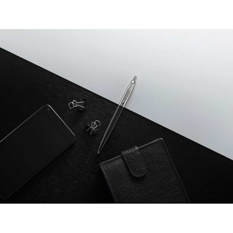 Długopis Parker Jotter Core, wkład w niebieskim kolorze, zapakowany w pudełko upominkowe, produkt wykonany z metalu i stali nierdzewnej