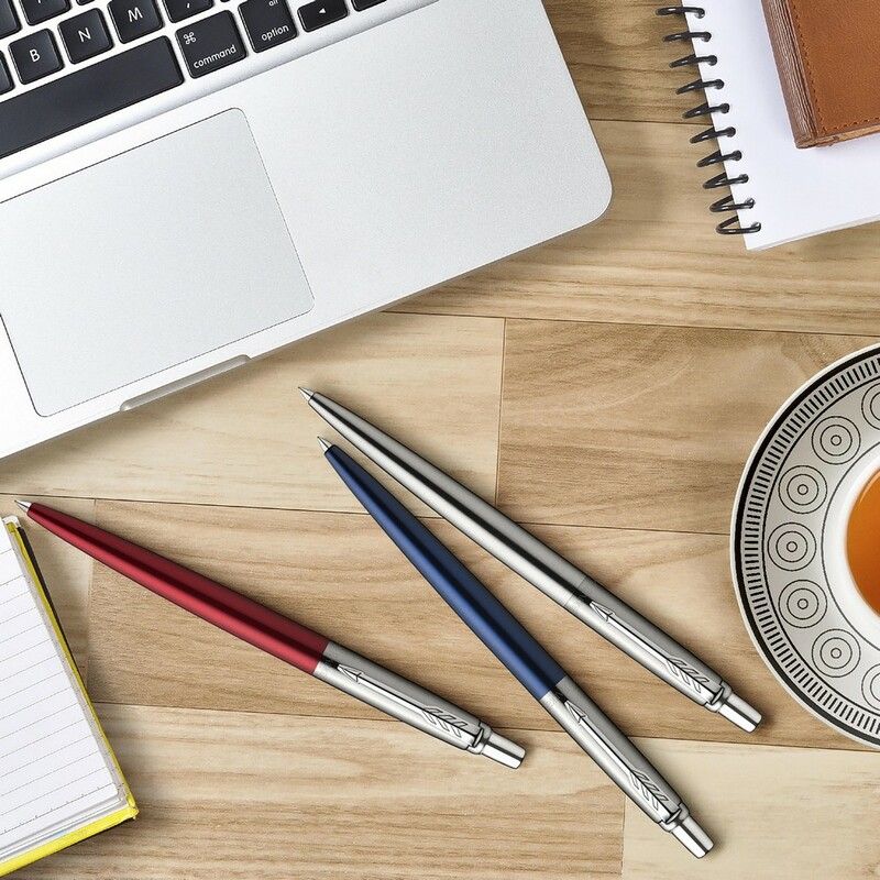 Długopis Parker Jotter Core, wkład w niebieskim kolorze, zapakowany w pudełko upominkowe, produkt wykonany z metalu i stali nierdzewnej