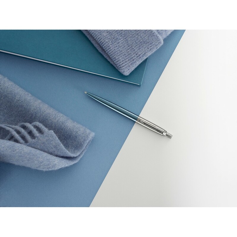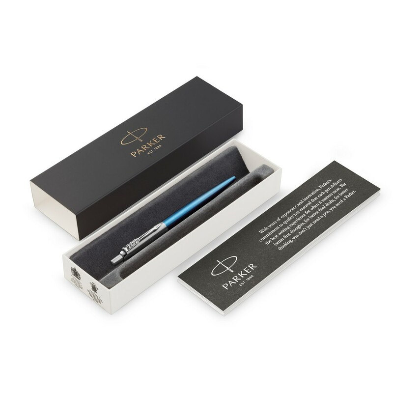 Długopis Parker Jotter Core, wkład w niebieskim kolorze, zapakowany w pudełko upominkowe, produkt wykonany z metalu i stali nierdzewnej