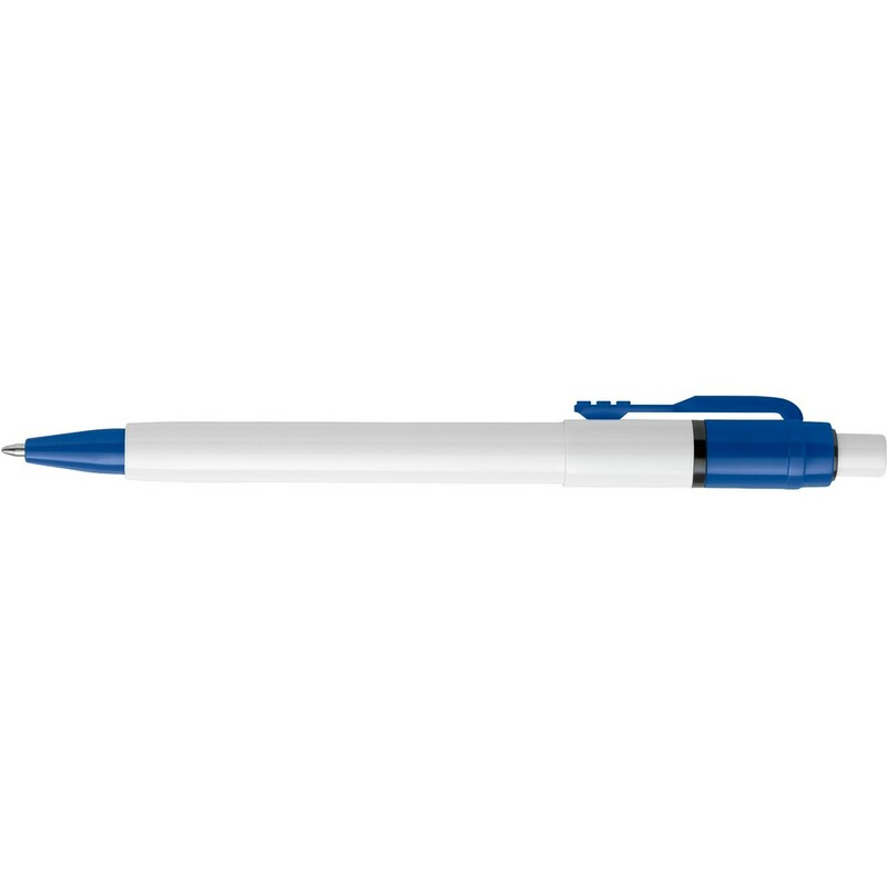 Długopis ABS Stilolinea Baron, biała końcówka i kolorowy klips, wkład w niebieskim kolorze, zawiera tusz German Dokumental Ink, produkt wykonany z ABS i plastiku